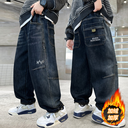 高品质牛仔布加绒加厚一体绒奥利绒牛仔裤